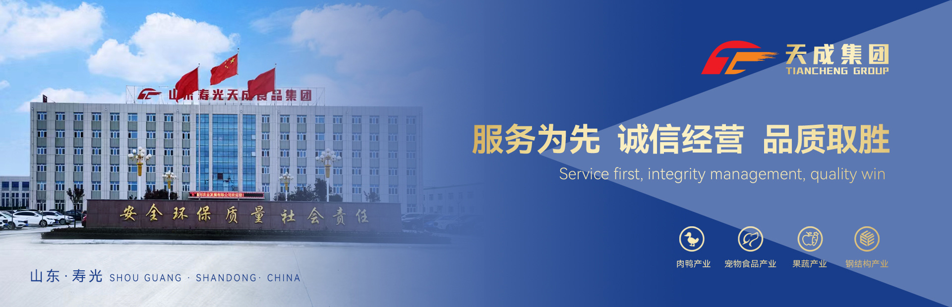 山東壽光天成食品集團(tuán)有限公司創(chuàng)建于1980年,是一家以櫻桃谷肉鴨和寵物食品加工產(chǎn)業(yè)為主,集飼料加工、獸藥生產(chǎn)、種鴨飼養(yǎng)、雛鴨孵化、商品鴨標(biāo)準(zhǔn)化養(yǎng)殖、肉鴨宰殺加工、寵物食品加工、果蔬種植加工、面米食品加工、鋼結(jié)構(gòu)工程和房地產(chǎn)開發(fā)于一體、產(chǎn)業(yè)化配套成龍的現(xiàn)代多元化農(nóng)牧企業(yè)集團(tuán)。